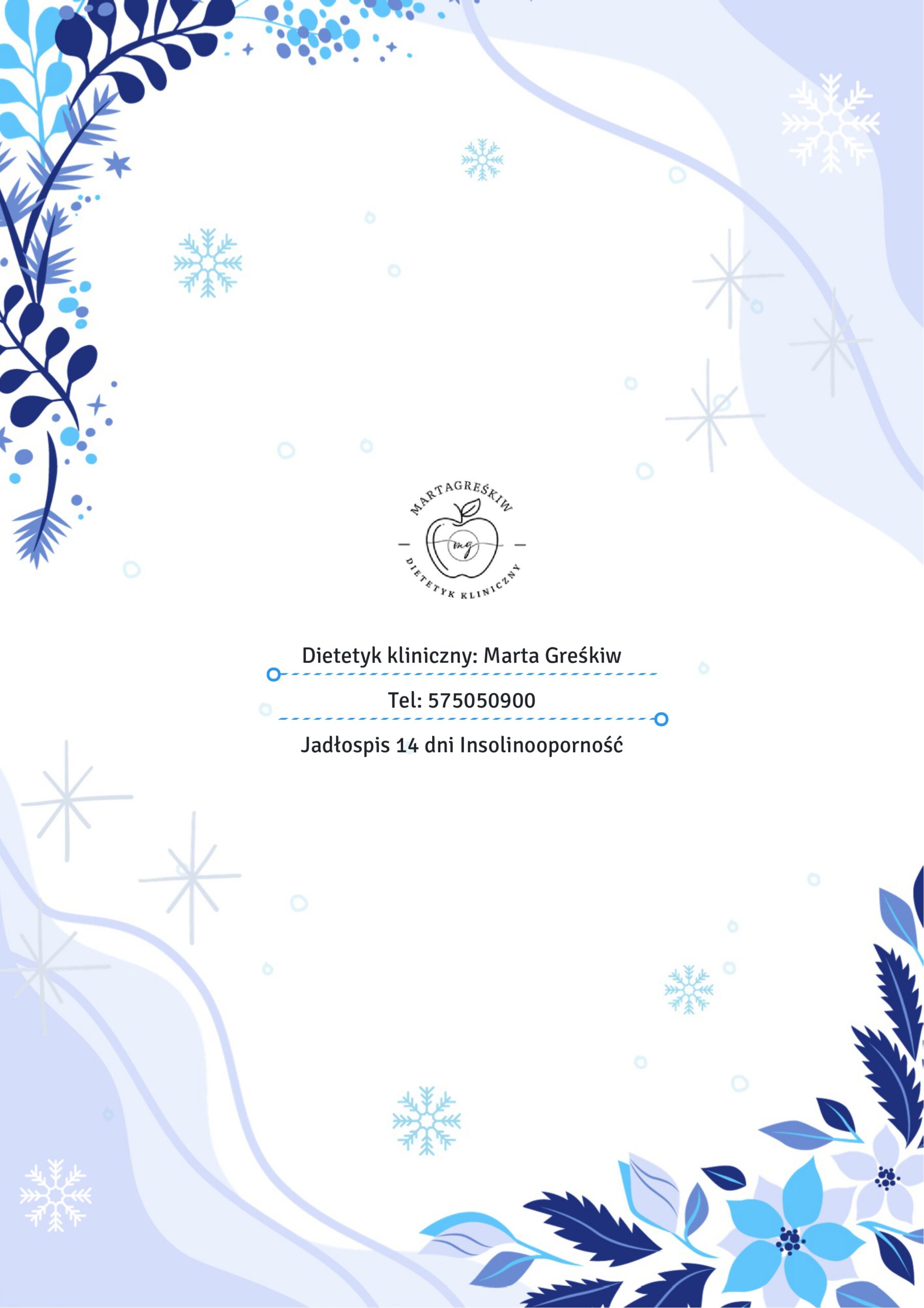 Jadłospis dedykowany dla osób z: Insulinoopornością, nadciśnieniem, nadwagą i otyłością.